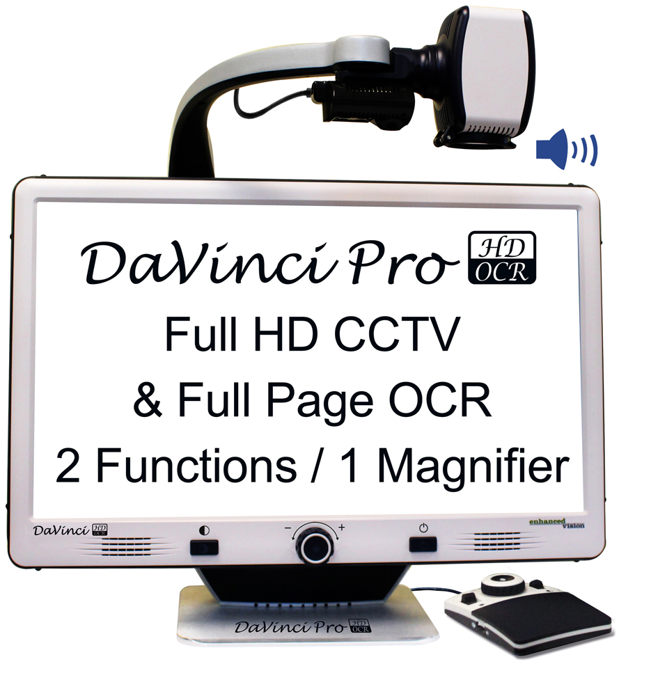 DaVinci Pro is a high performance desktop video magnifier (CCTV), featuring a Full HD Sony 1080p 3-in-1 camera and Full Page Text-to-Speech (OCR). With Full HD you will experience high definition color and contrast giving you a beautiful, crystal clear picture and vibrant colors. Experience the joy of reading with our new text-to-speech feature. DaVinci Pro will read any printed text aloud with the push of a button.